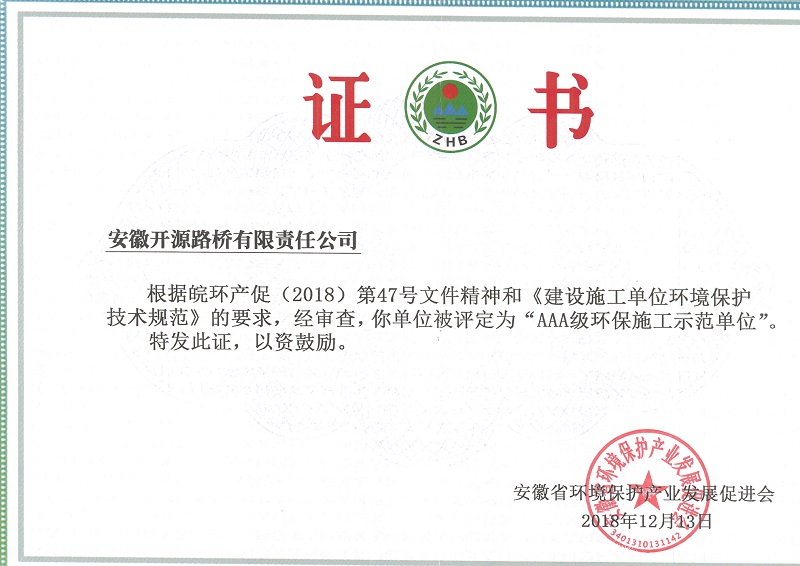 近日,经安徽省环境保护产业发展促进会环保信用评估、考核,公司荣获AAA级环保施工示范单位称号。 多年来,公司围绕“建绿色工程,促和谐发展”的管理方针,积极开展环保政策宣贯,从安全文明环保施工角度出发,逐步...